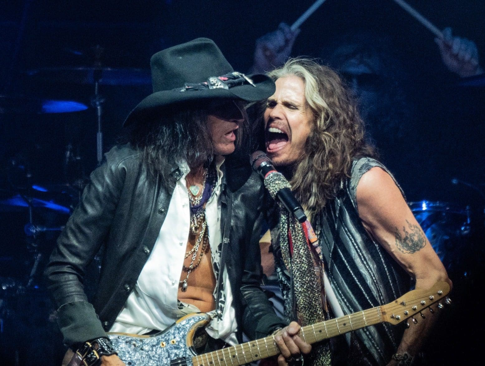 Also, as would be expected, Aerosmith continued to look the part of rock and roll icons. USA Today said Steven Tyler was “clad in a long silver coat and floppy black hat and looking like your coolest older aunt.” Meanwhile, Joe Perry looked like “a slouchy rock cowboy in his own black hat and billowing white shirt.”
