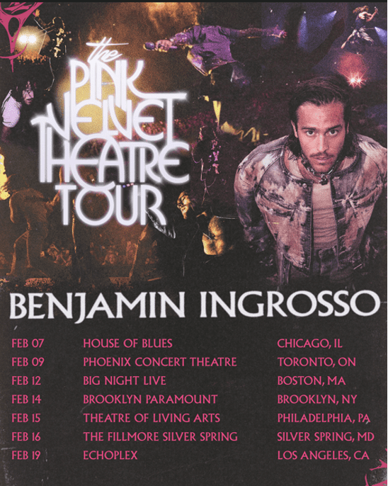 Following the release of his critically-acclaimed album Pink Velvet Theatre and a 200k sold-out European tour, Swedish pop phenomenon and multi-billion-streamed artist Benjamin Ingrosso has announced his Pink Velvet Theatre North American Tour produced by Live Nation. The exclusive dates kick off February 7, 2025 in Chicago, IL, and will see Benjamin bring his captivating, larger-than-life live show to major North American cities for the first time, including Toronto, Boston, New York City, Philadelphia, Washington D.C., and Los Angeles.