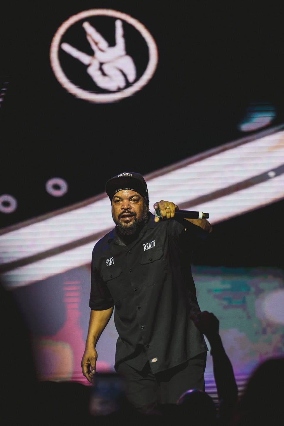 As the lights dimmed, a roar of anticipation erupted from the crowd. The stage came alive with a stunning visual display, a blend of lights, and a massive screen that projected images synonymous with Ice Cube’s storied career. The electrifying atmosphere set the stage for a night that would transport fans back to the golden era of rap.