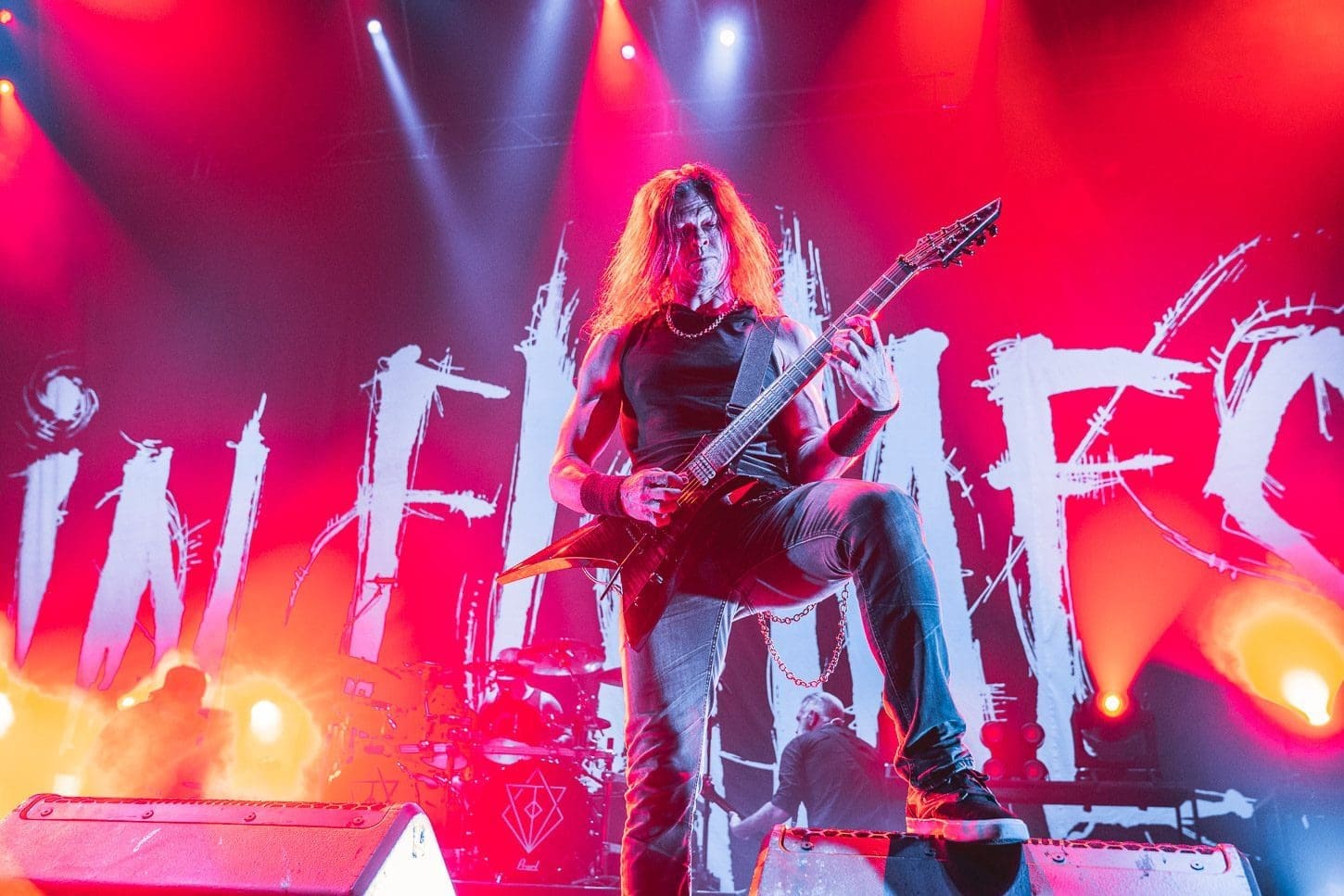 On this leg, the Swedish heavy metal band In Flames, formed by guitarist Jesper Strömblad 1990 opened the night. In Flames has released 13 albums and 3 EPs during their 30 plus years in the business, with their latest album I, the Mask which dropped in 2019. The band played a heavy 8 song set as the arena filled which lit the fuse for what was to come.