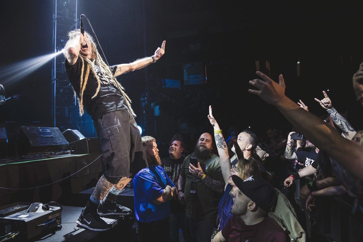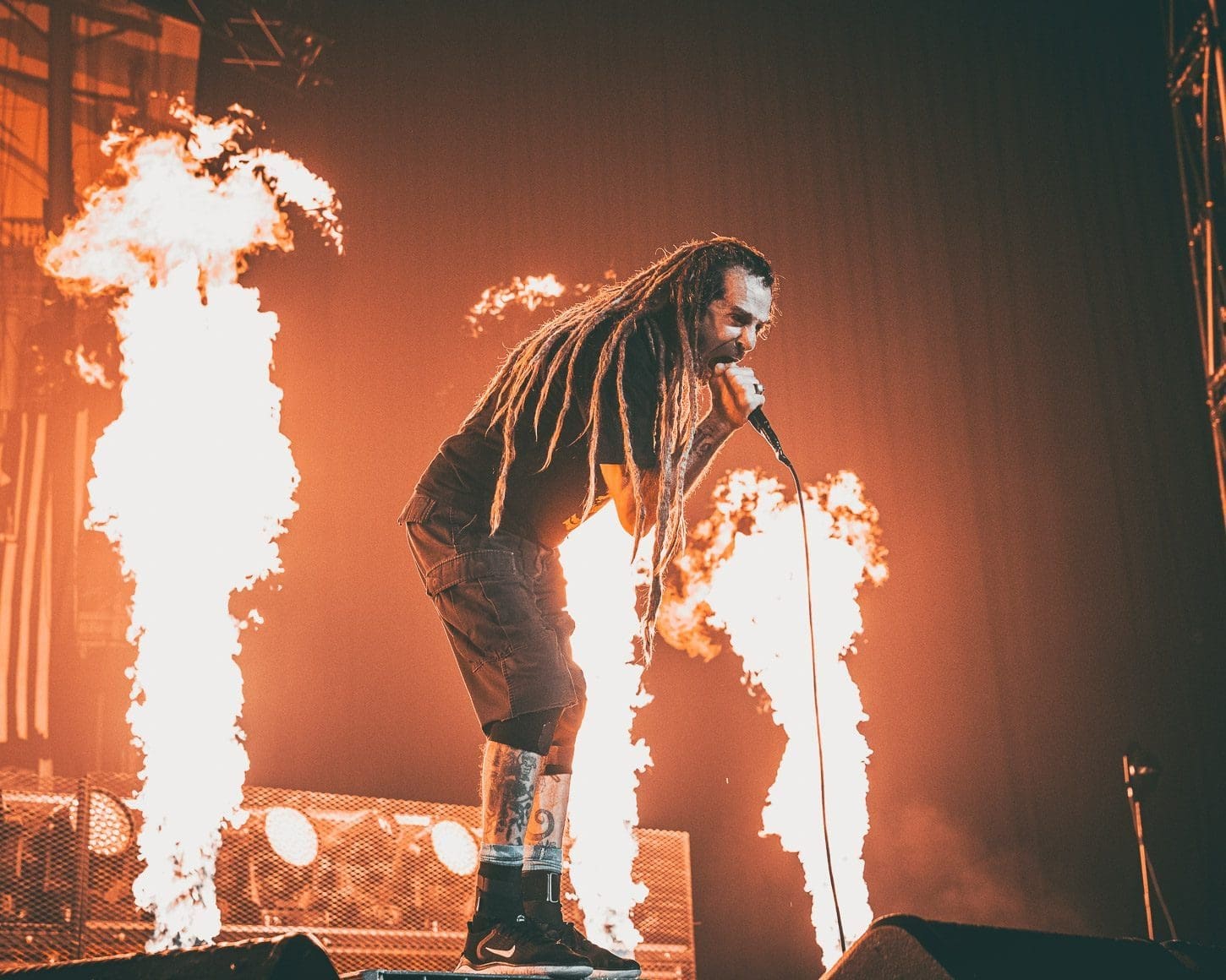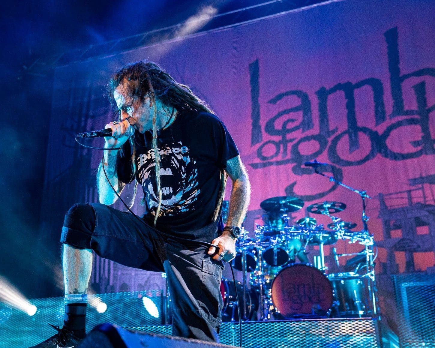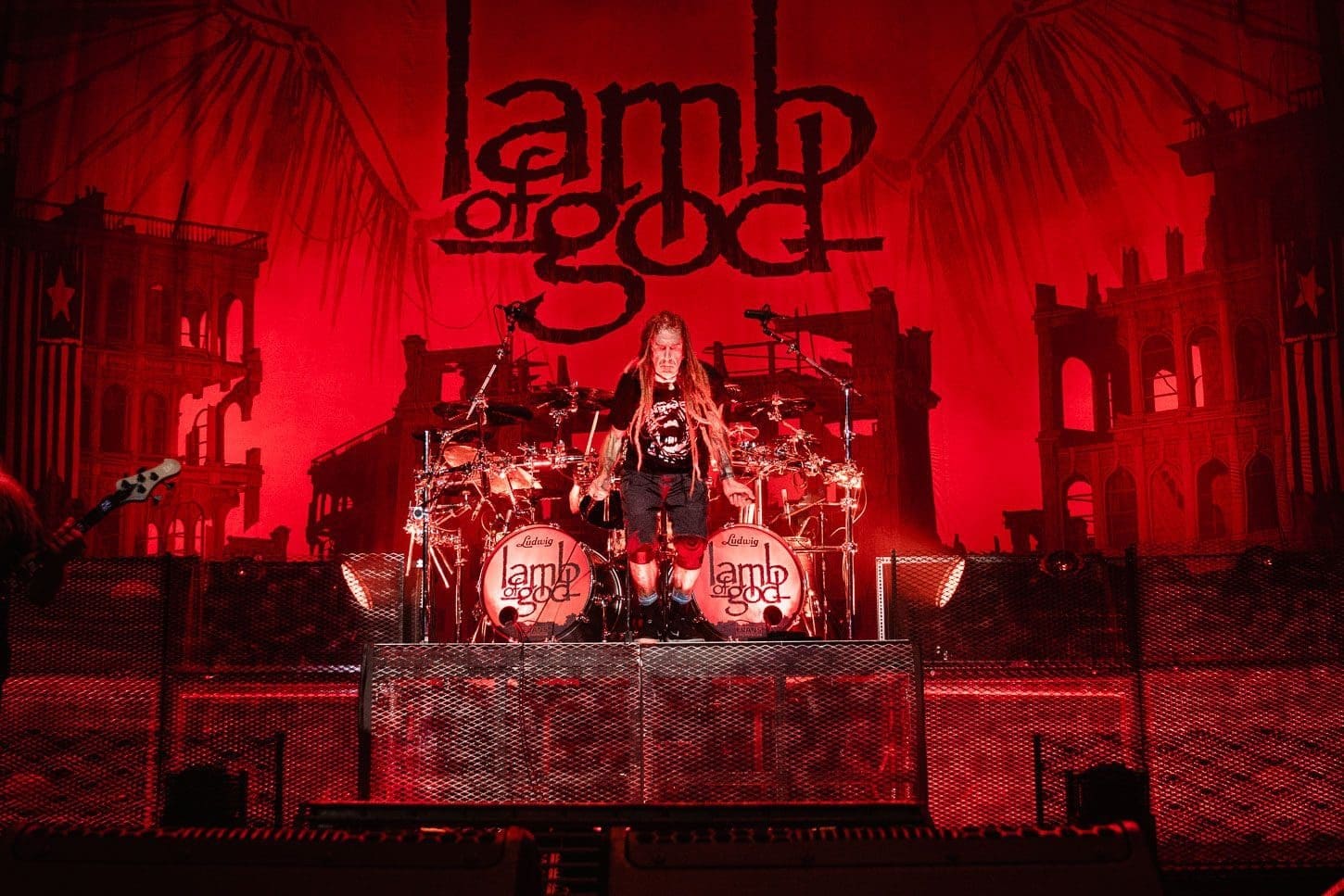 Third was the all mighty Lamb of God! Hailing from Virginia, this is one band that never disappoints. The anticipation that grows with the raising of the curtain that shields the crowd from the preparation of stage is palpable. There is no frontman in the heavy metal scene better than Randy Blythe. From the moment the kabuki drops, his incessant pacing and whipping of his dreads causes the fans energy to boil over. It could also be the incredible amount of pyro that Lamb of God uses! For me, there is something about “Walk With Me In Hell”, the 3rd song in the set, which bring things to a head. You can fill the energy building as the flames grow higher and higher and it is all topped off with Randy’s giant leap off of the drummer’s riser.