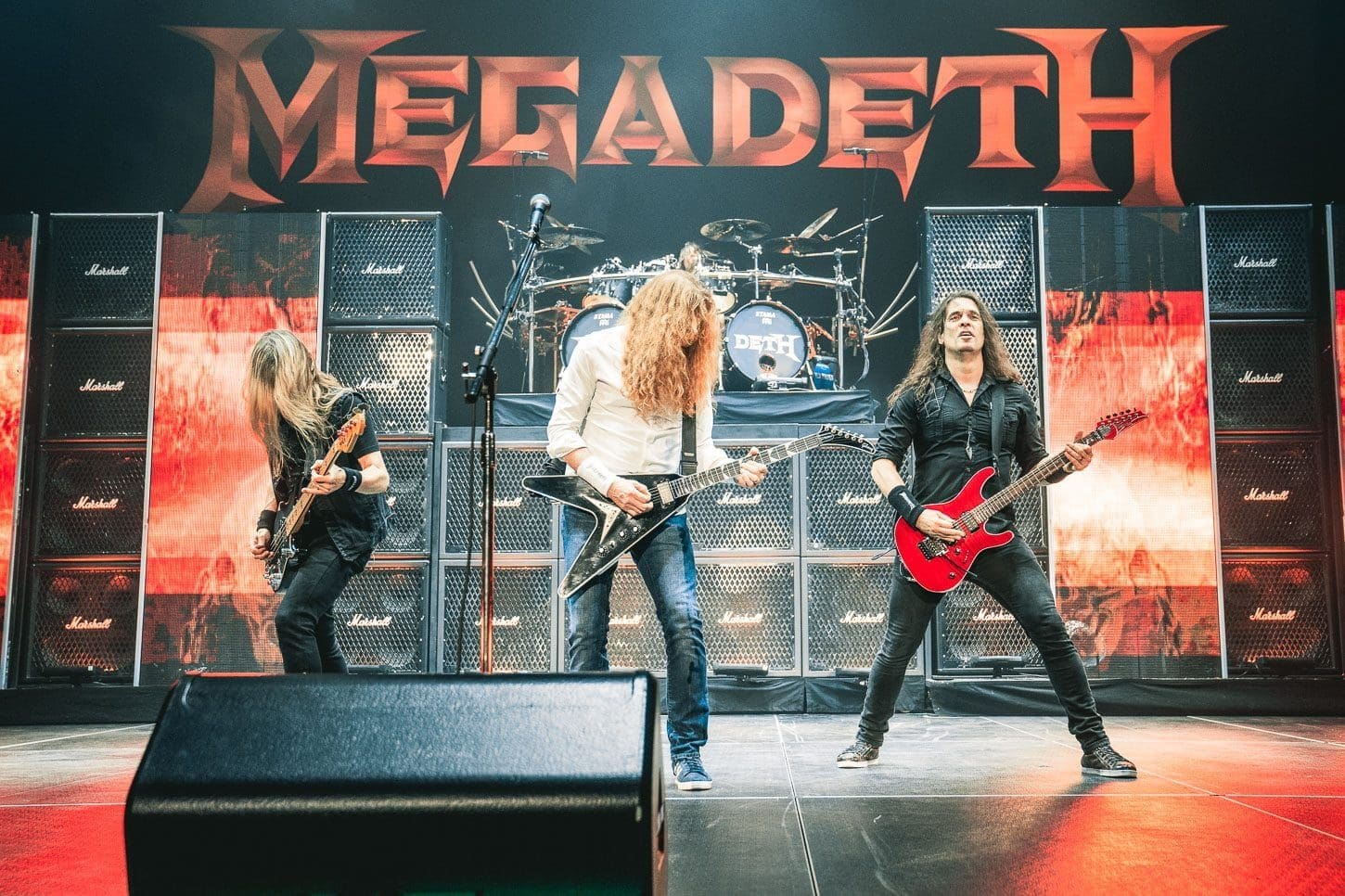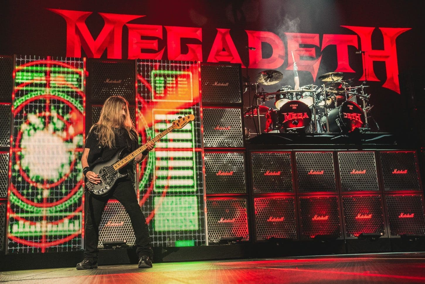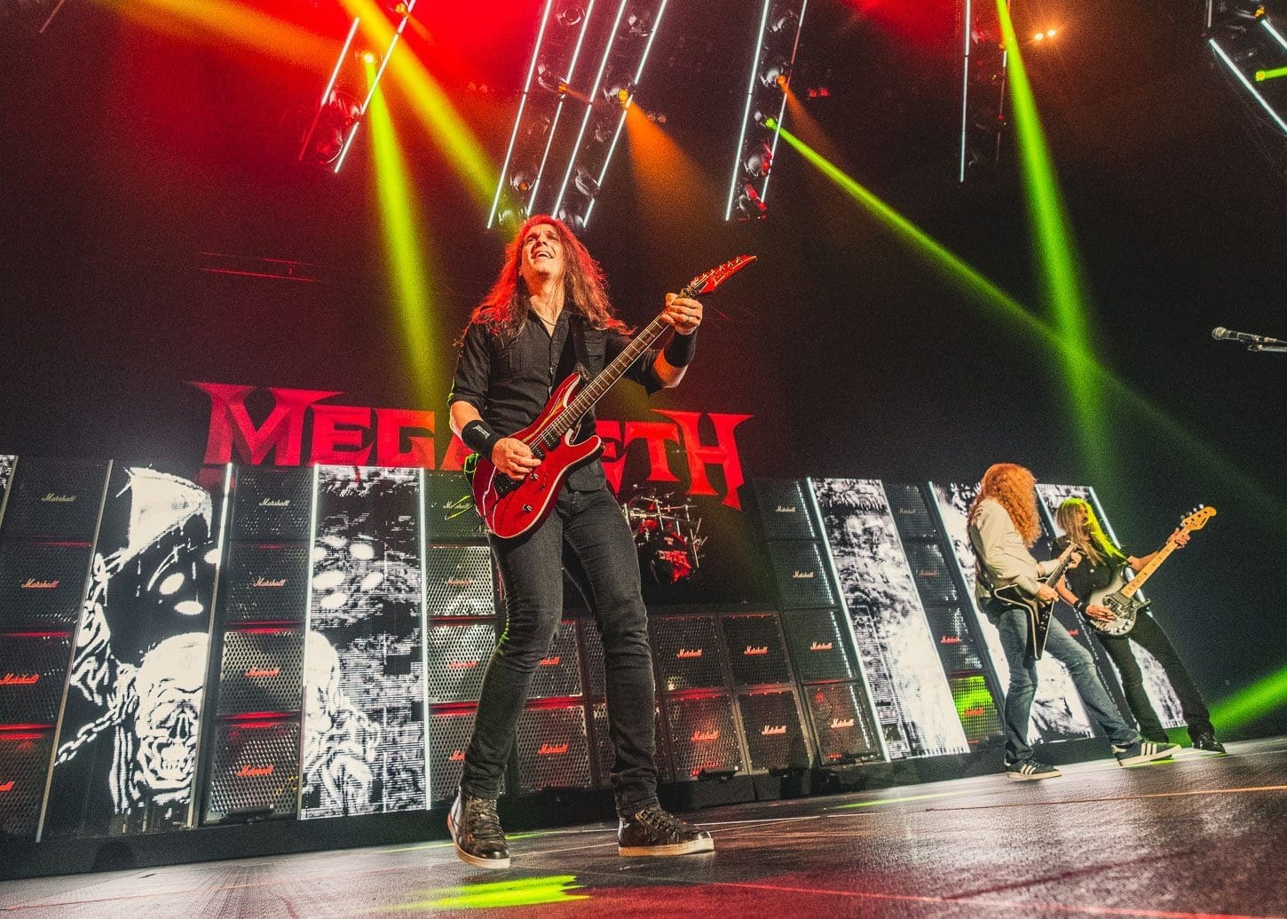 Finally it was time for one of heavy metal’s legendary bands Megadeth to take the stage. Fronted by Dave Mustane, Megadeth has been doing it since 1983! Known as one of the “big four” metals bands, along with Metallica, Anthrax and Slayer, they are responsible for the thrash metal genre’s growth and popularity. With a beautiful back drop of colorful screens, Marshall amps and a giant Megadeth logo, the foursome gave Allentown, PA a lesson on guitar dexterity and speed as they performed a 12 song set which opened with their huge hit “Hangar 18.” Mustane seemed to be extremely jovial on this night, giving picks and wristbands to security to give to young fans in the crowd and mentioning how happy he was to be back on stage after the 2 years we all went through with no shows. Megadeth ended this show with an encore of “Holy Wars” which gave the fans one last time to rock out before heading home after the ass whoopin’ that was indeed “The Metal Tour of the Year.”