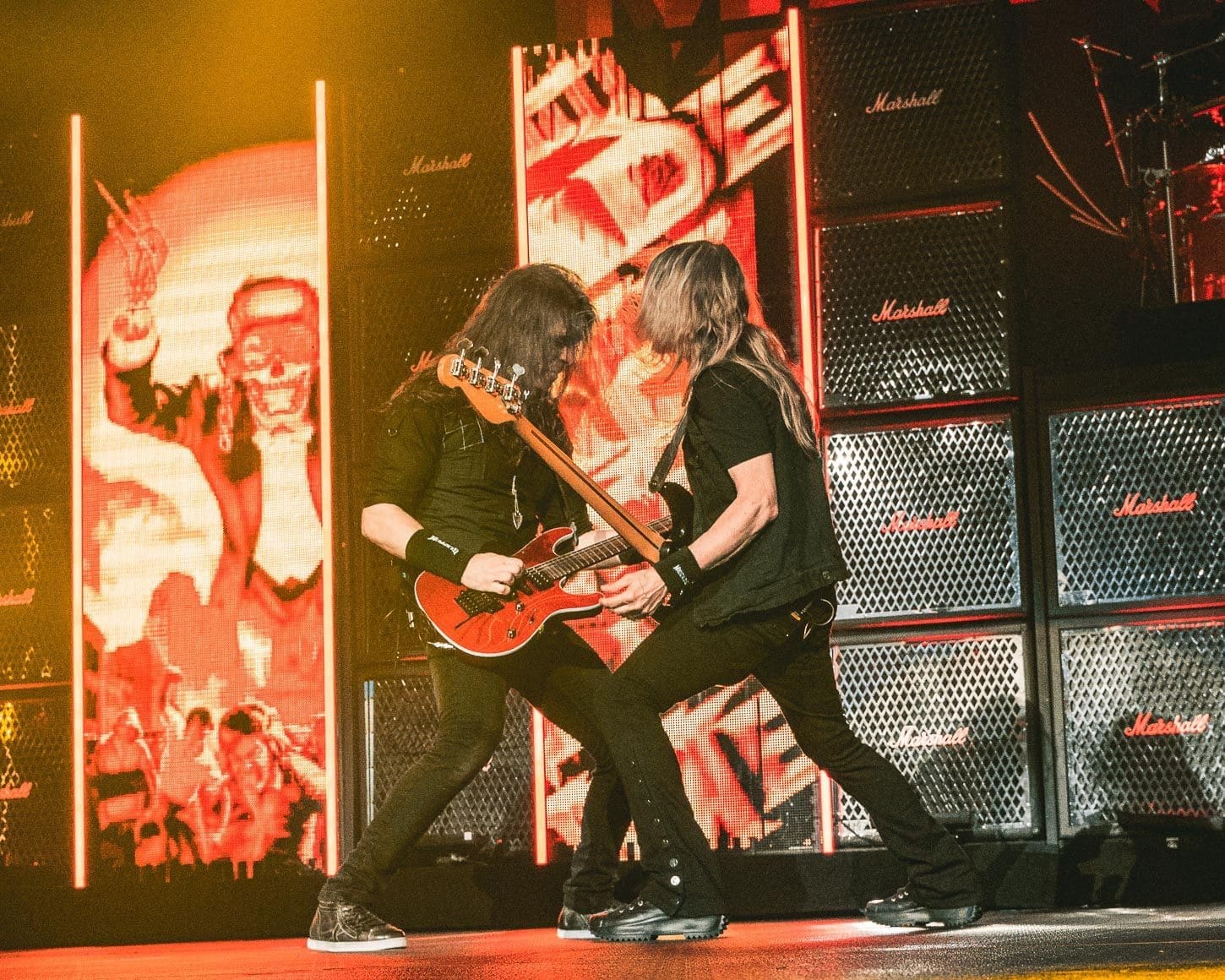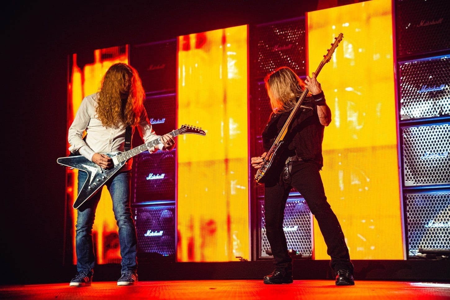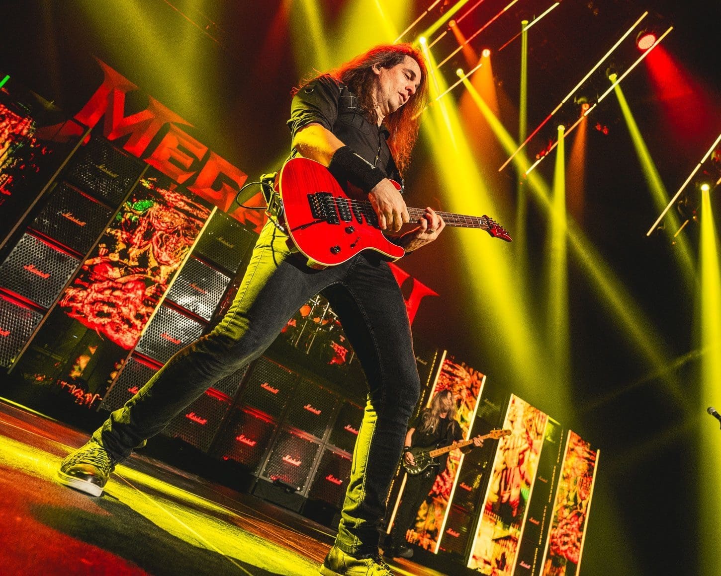 Finally it was time for one of heavy metal’s legendary bands Megadeth to take the stage. Fronted by Dave Mustane, Megadeth has been doing it since 1983! Known as one of the “big four” metals bands, along with Metallica, Anthrax and Slayer, they are responsible for the thrash metal genre’s growth and popularity. With a beautiful back drop of colorful screens, Marshall amps and a giant Megadeth logo, the foursome gave Allentown, PA a lesson on guitar dexterity and speed as they performed a 12 song set which opened with their huge hit “Hangar 18.” Mustane seemed to be extremely jovial on this night, giving picks and wristbands to security to give to young fans in the crowd and mentioning how happy he was to be back on stage after the 2 years we all went through with no shows. Megadeth ended this show with an encore of “Holy Wars” which gave the fans one last time to rock out before heading home after the ass whoopin’ that was indeed “The Metal Tour of the Year.”