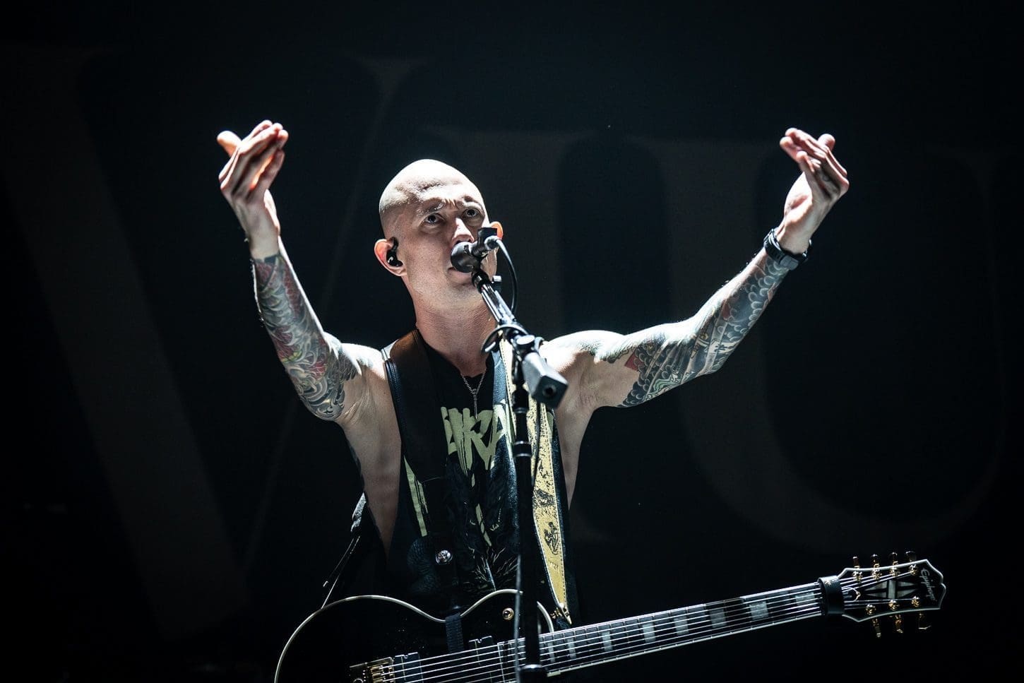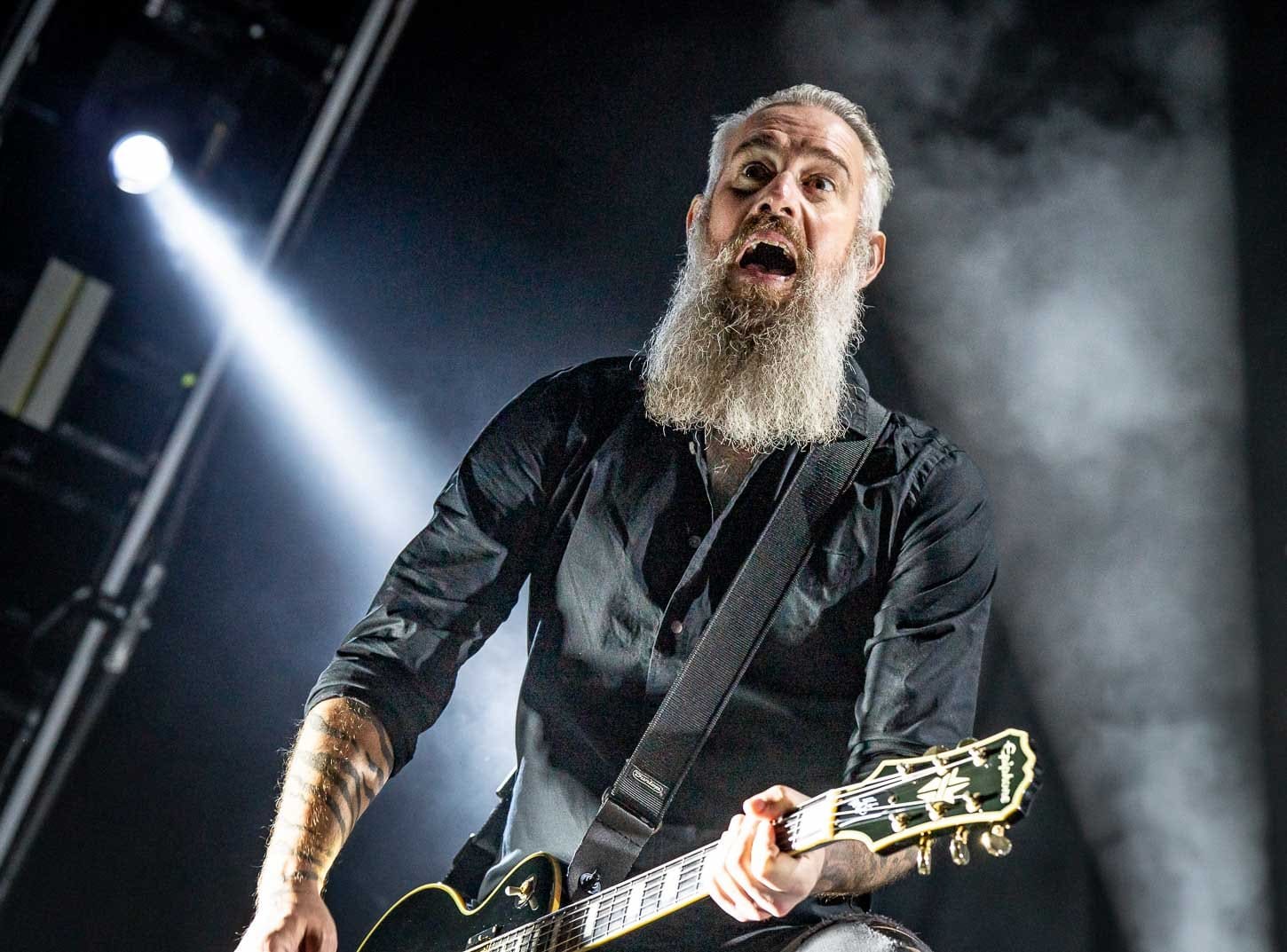 Next up was the 2019 Grammy nominated Trivium out of Orlando, Florida. The band is lead by vocalist and guitarist Matt Heafy, guitarist Corey Beaulieu, bassist Paolo Gregoletto, and drummer Alex Bent. Heafy explained to the crowd that he had fallen ill the day before but was going to power through their set because he loved his fans. You would have never know that Heafy wasn’t feeling well as he commanded the crowd by ordering his minions to execute fist pumps, screams and circle pits. Trivium opened up their eight song set list with the title track off their most recent album, “In the Court of the Dragon”. The band performed 3 songs from that latest album and closed out their set with fan favorite “In Waves.”