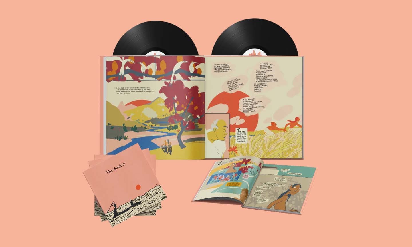 Siddhartha, the Herrman Hesse novel that has captivated and enlightened readers for over a century, has been reinvented for a new multimedia project. The Seeker features music and lyrics by composer and writer Rachel Fuller and The Who’s Pete Townshend, spouses and longtime creative partners. The project combines a 128-page hardback book and a double vinyl LP into one package. The two components will also be available separately; the standalone version of the book includes a QR code to access the album digitally.