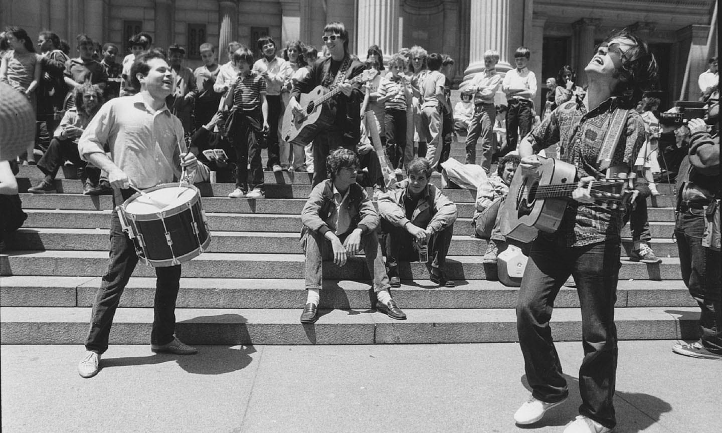 But when members of the Pretenders caught Violent Femmes performing on the sidewalk during a tour stop at Milwaukee’s Oriental Theatre, the legendary British/American band spontaneously added them to the bill at that night’s sold-out show. By the following summer, Violent Femmes had landed a spot opening for punk heroes Richard Hell and the Voidoids at New York City’s Bottom Line — a two-night engagement caught by Fricke himself, who soon penned a glowing review in Musician magazine. “The Violent Femmes don’t just steal the show — they blow a fresh wind of post-punk originality rooted in rockabilly simplicity, the dry, folk twang of quintessential hobo Dylan and the stark bash and graphic lyricism of Lou Reed and the Velvet Underground,” he wrote.